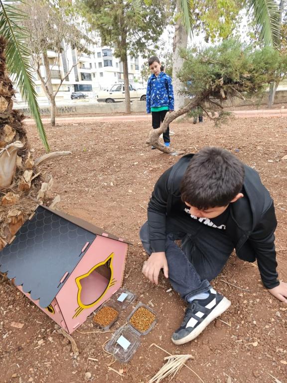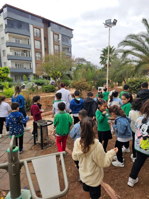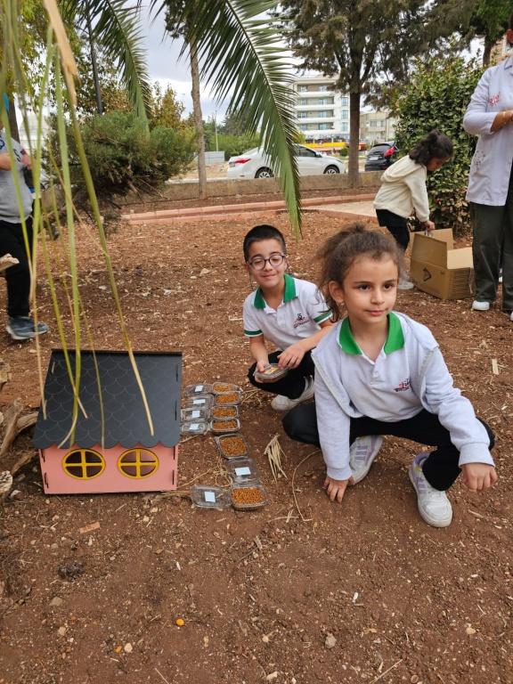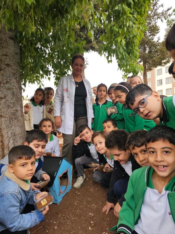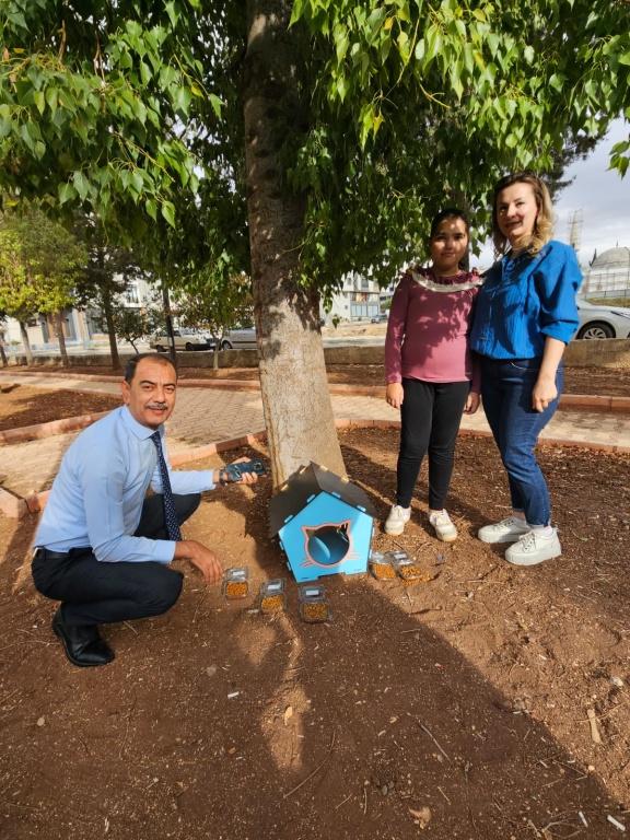 2-E Sınıfı öğretmeni Hatice GÖĞEBAKAN ve öğrencileri Hayvanları Koruma Haftası için yapılan etkinlikler kapsamında okulumuzun yanındaki parka sokak hayvanları için yaptıkları kulübeyi ve hazırladıkları mamaları bıraktılar.